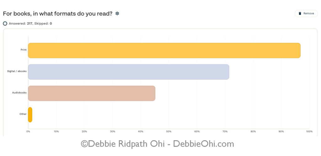97% said they read print books, 71% said digital/ebooks, 45% said audiobooks.